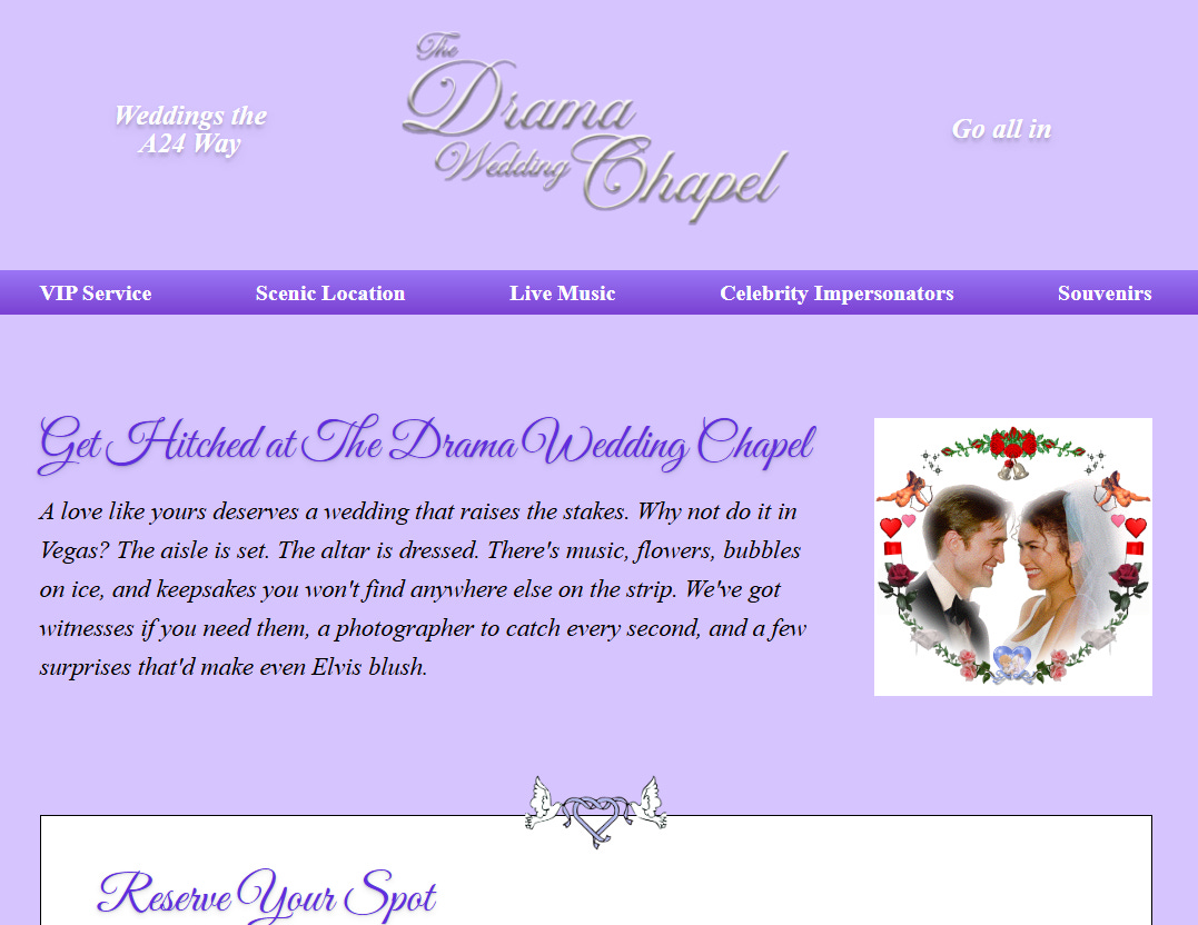 Also, if you’re planning to get married in Vegas this month, you could maybe do it for free with this very A24 promotion of that Zendaya/Robert Pattinson movie. I might call this PR stunt dubious, and I might call Pattinson famously quisquous.